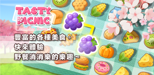 美食消消樂,輕鬆的美味野餐配對遊戲。